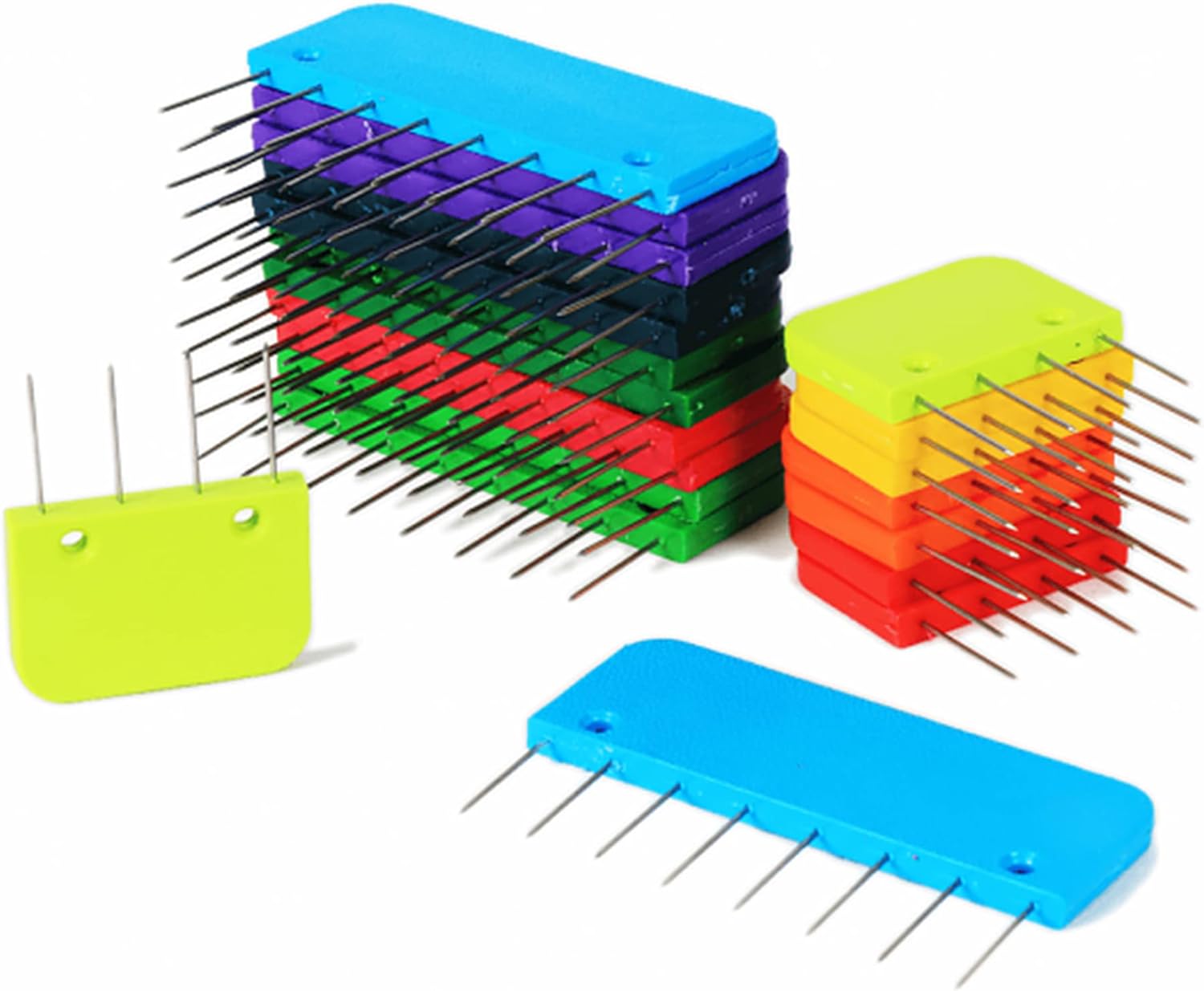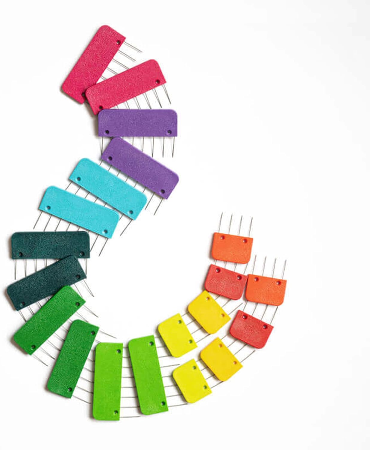 Al tener más de un alfiler en la punta, los bloqueadores para tricotar facilitan el bloqueo de labores de mayor tamaño.