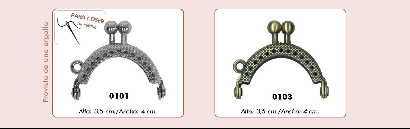 Cierre para monedero de metal (Latón). Provista de 1 argolla.