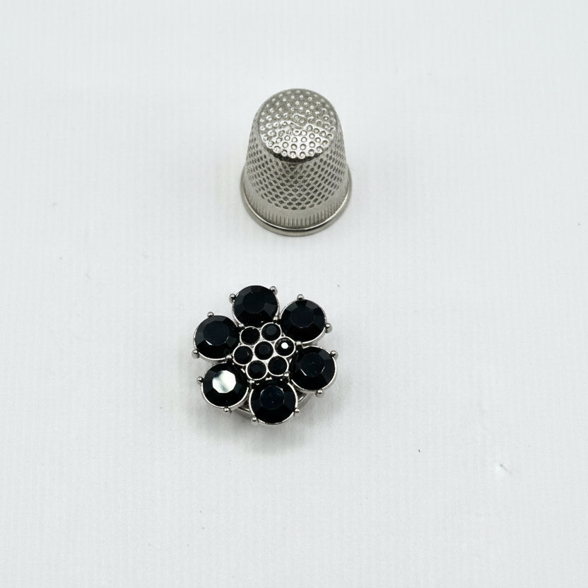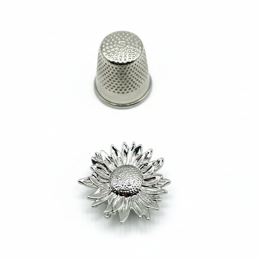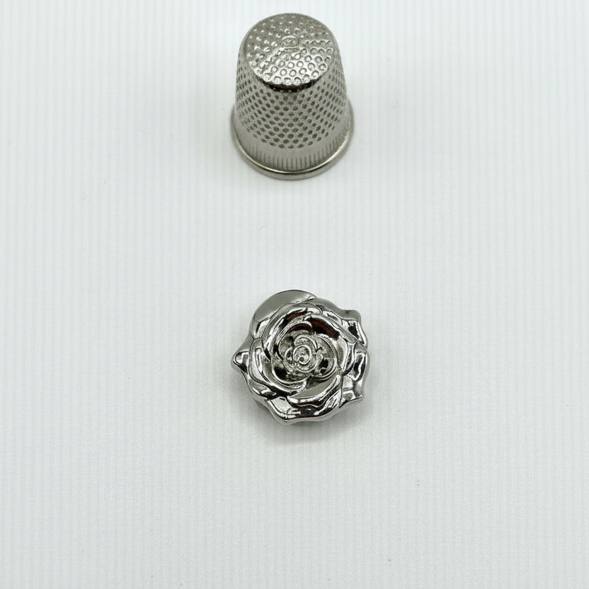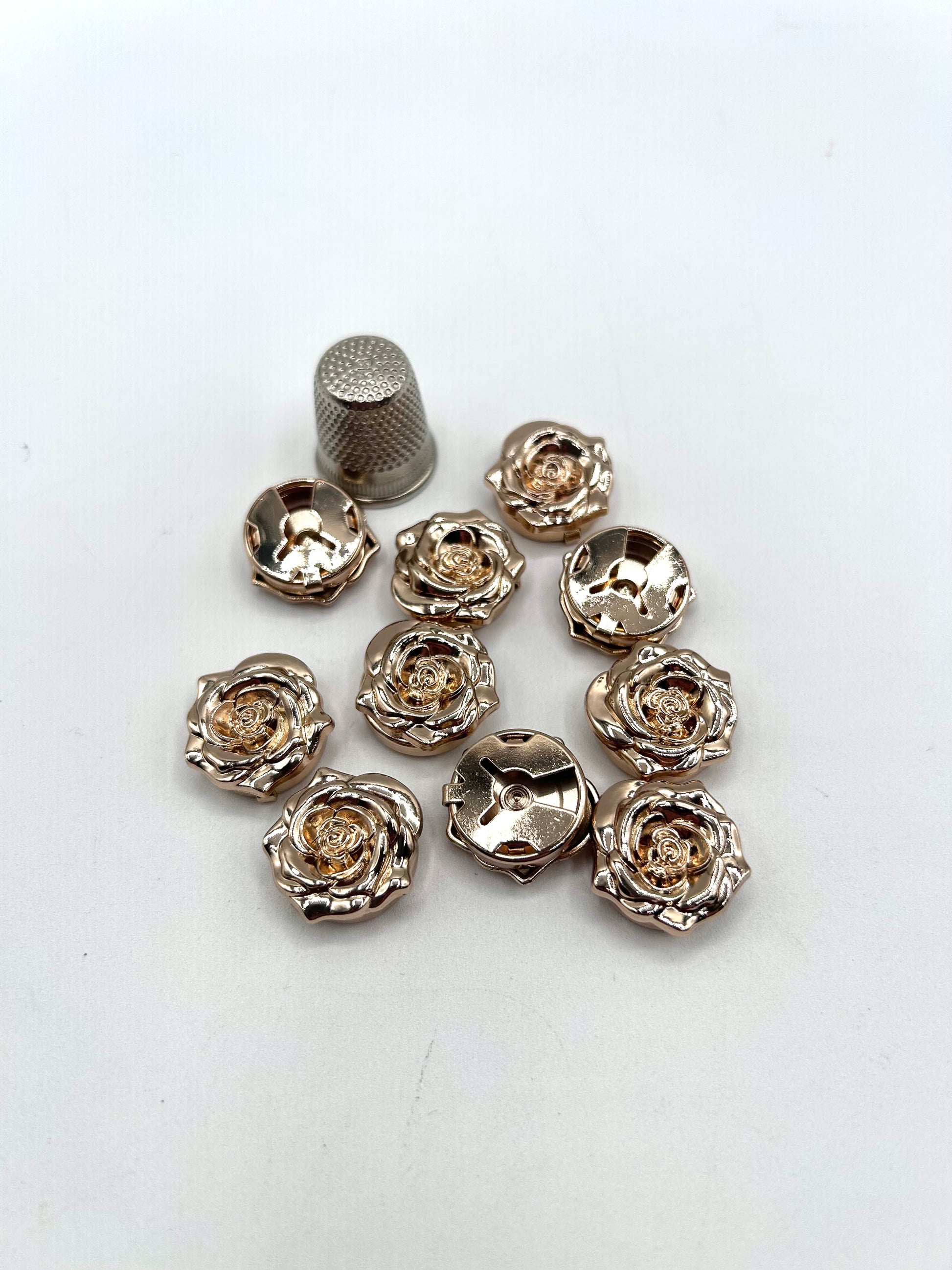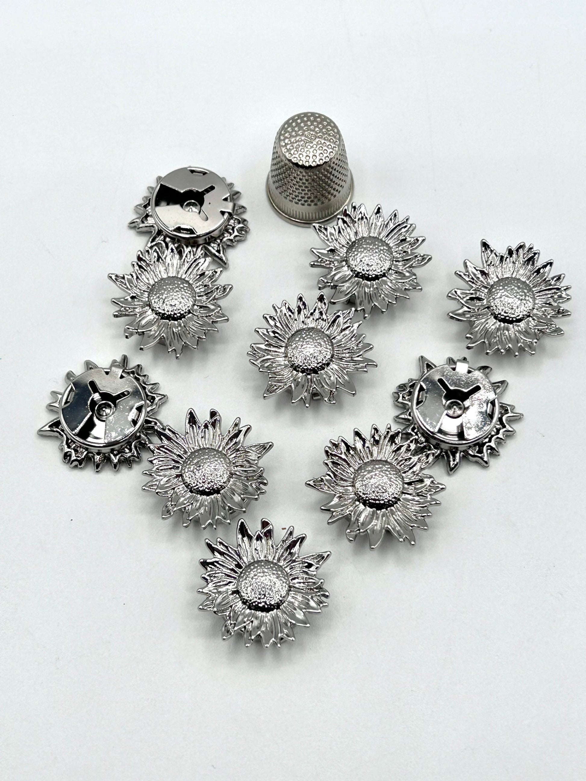 Fabricados en latón y zinc con acabados en dorado o plateado, y disponibles en cuatro formas distintas — Flor, Margarita, Rosa y Flor con pétalos de cristal — son el complemento perfecto para prendas de ropa, accesorios de bisutería y proyectos de costura creativa.