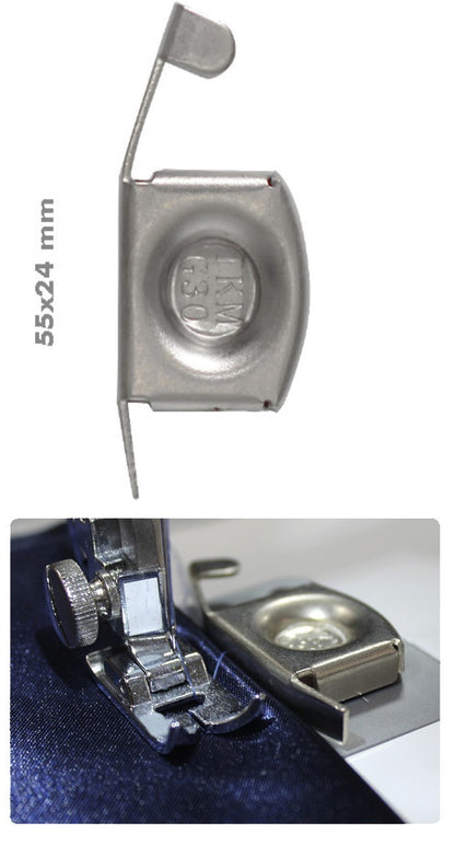 Permite hacer jaretas y tablas de cualquier anchura a la perfección sin medir. Úselo en una máquina de coser que tenga la placa de agujas de metal.