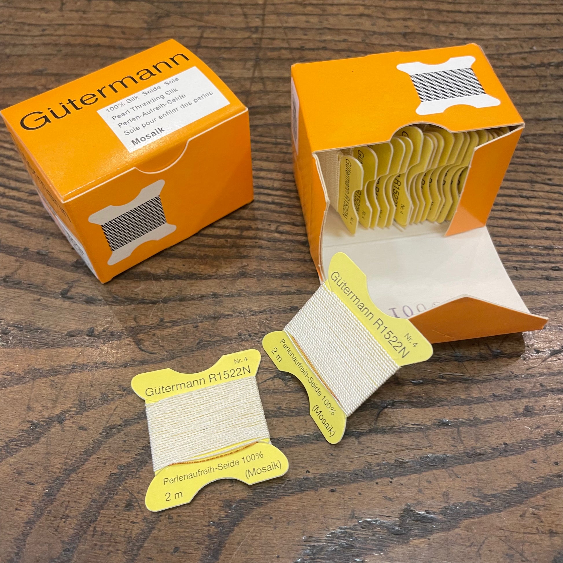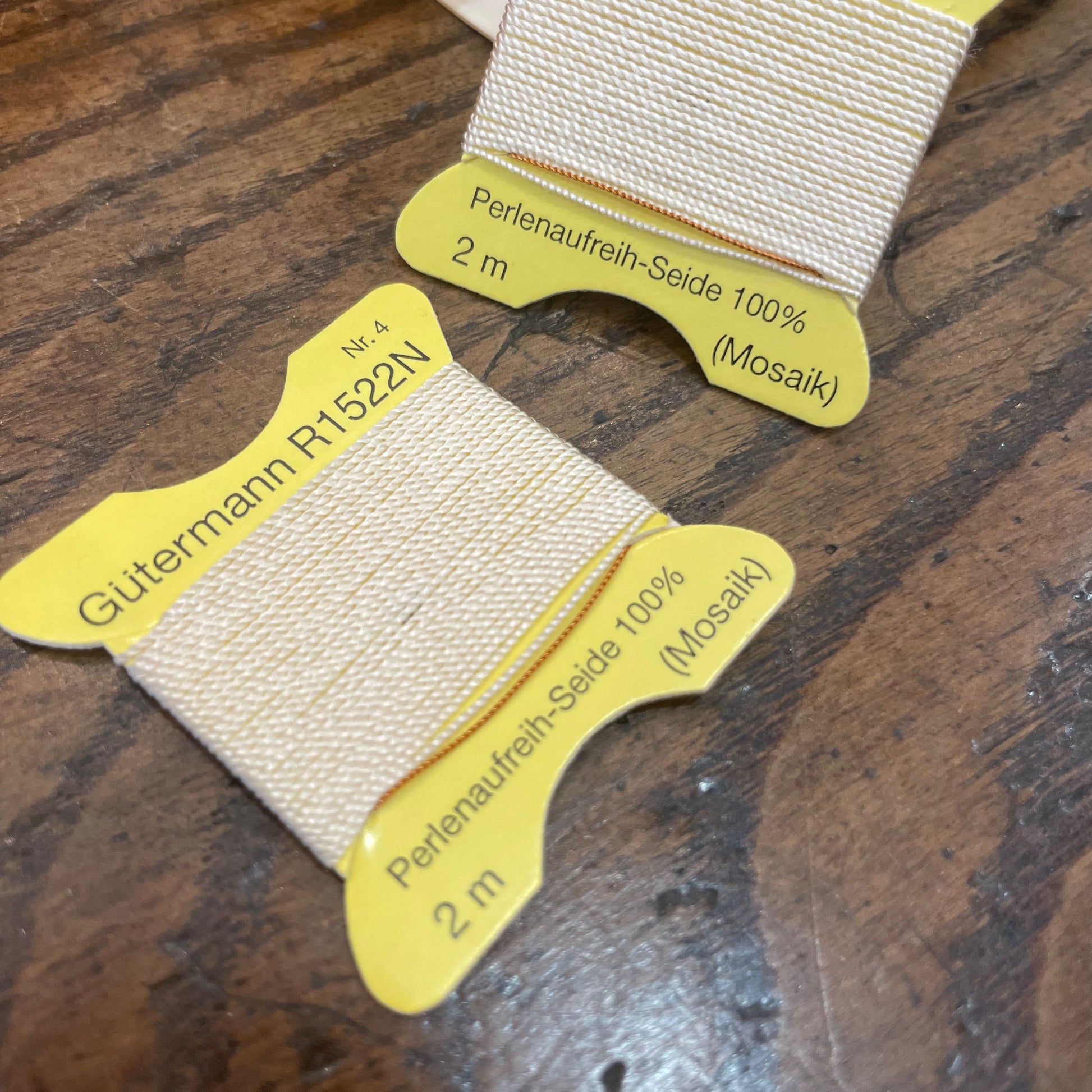 Hilo de seda 100% especial para enfilar perlas. Marca GÜTERMANN.