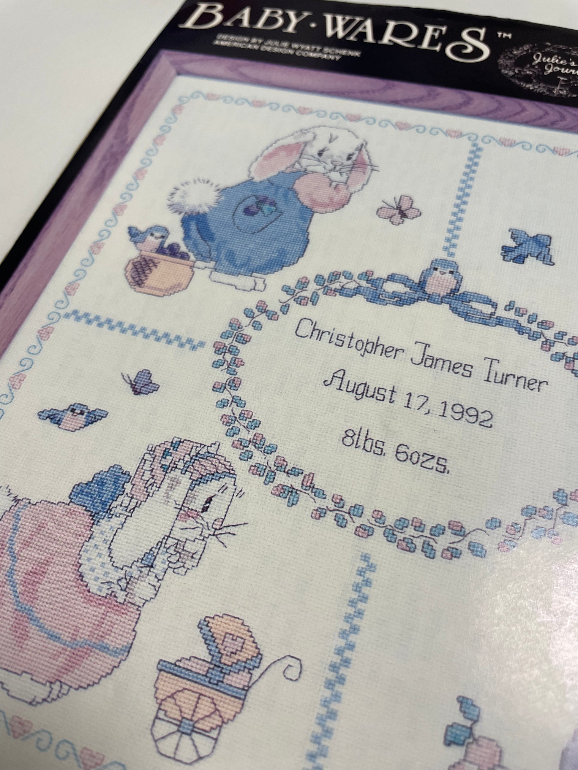 Kit de punto de cruz Baby wares - 35,6x35,6cm - "Nacimiento bebé" - hilos incluidos