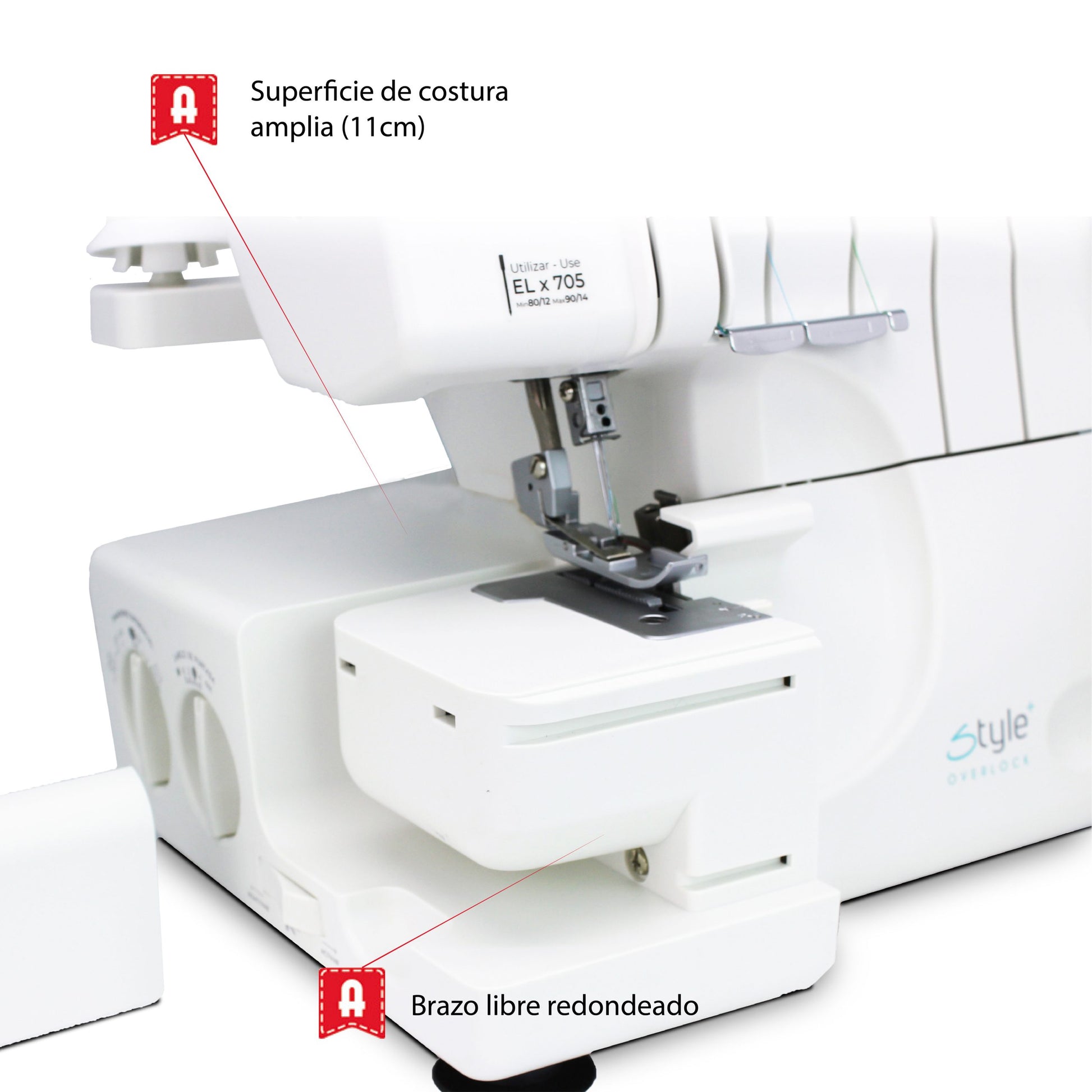 - Brazo libre redondeado para facilitar el transporte del tejido.
