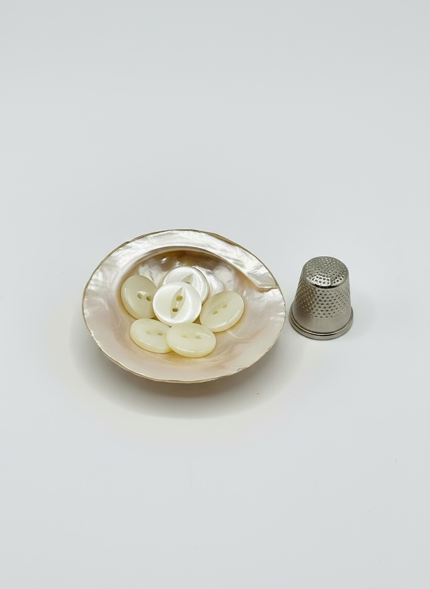 Pack de 8 botones de auténtico nácar, años 40, color beige, únicos y exclusivos. Medida botón: 1,5 cm.