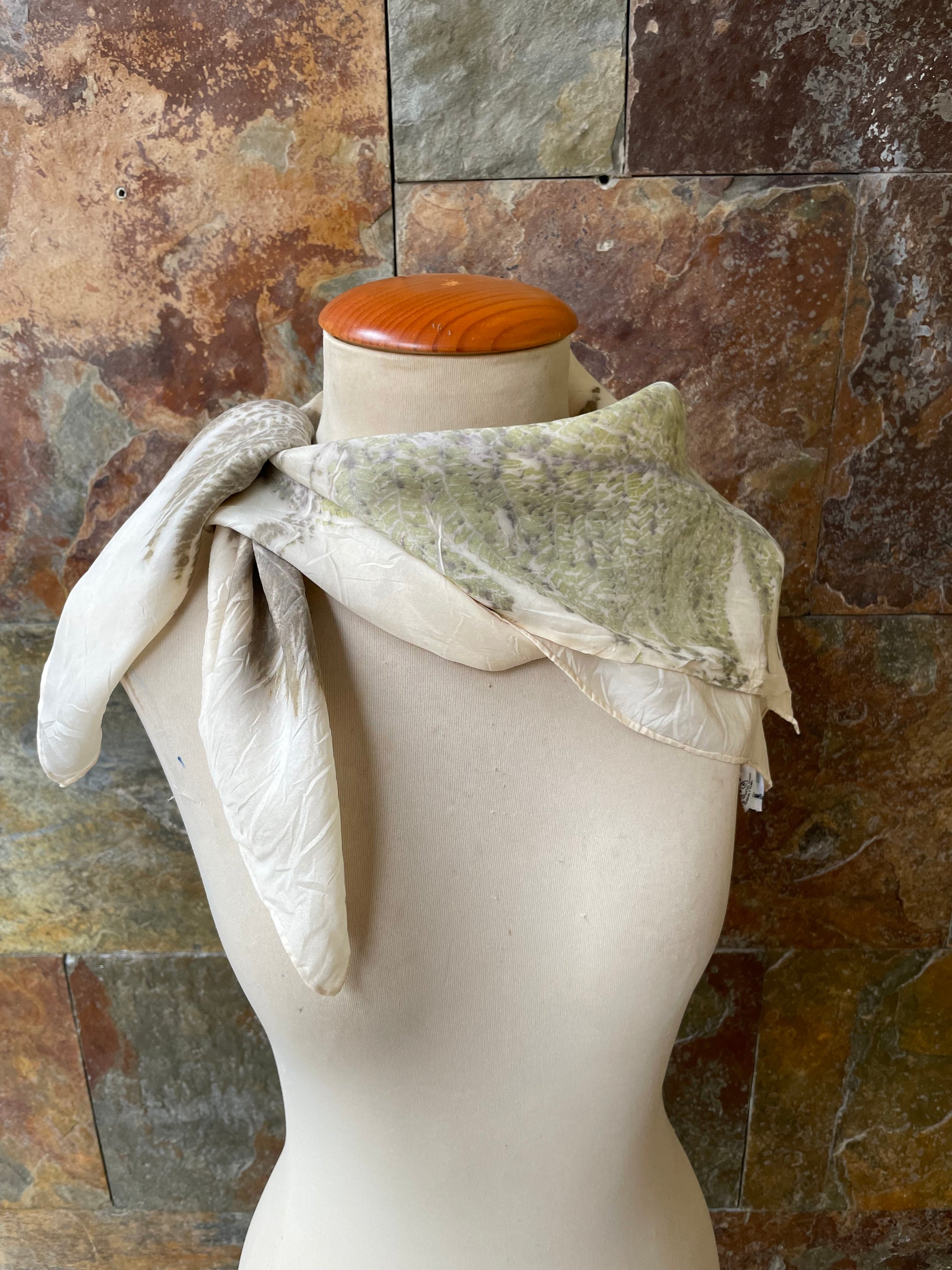 Pañuelo de cuello de seda 100% tintado con la técnica ECOPRINT por RAMÓN SANTOS