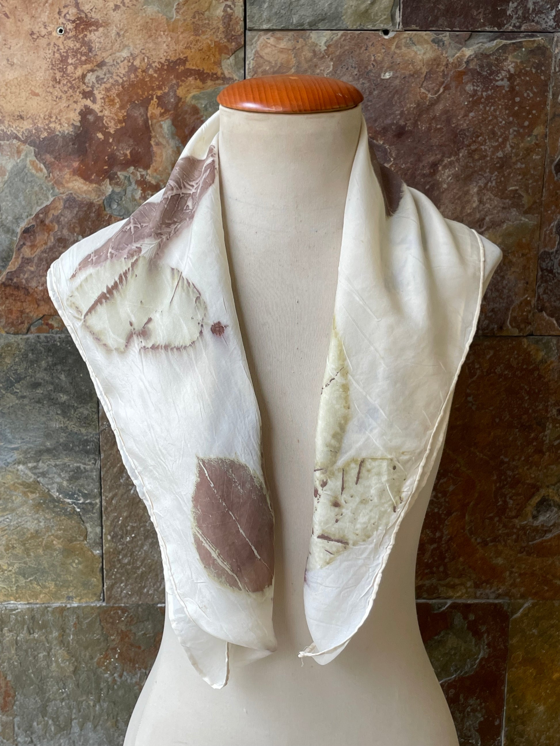 Pañuelo de cuello de seda 100% tintado con la técnica ECOPRINT por RAMÓN SANTOS