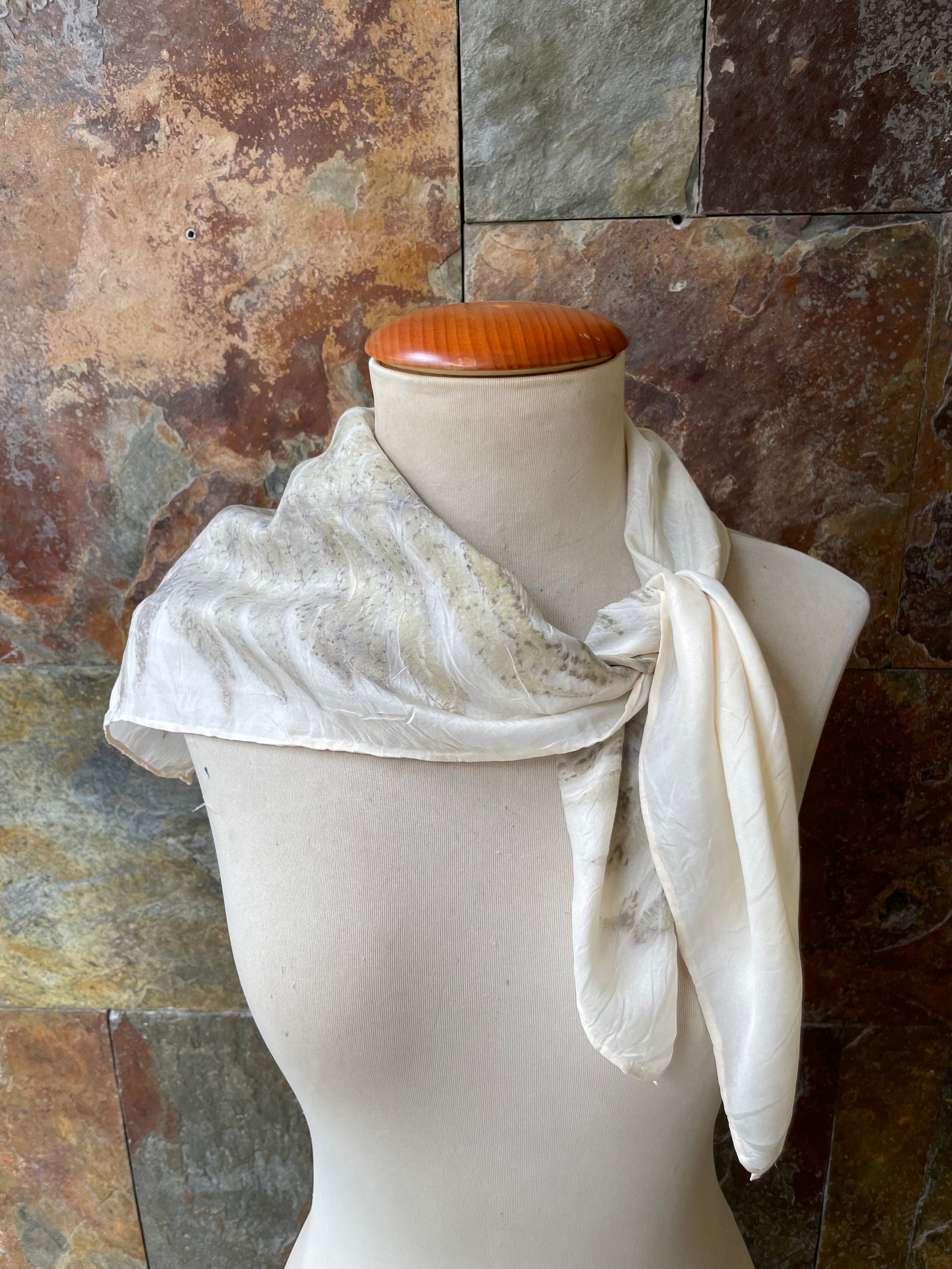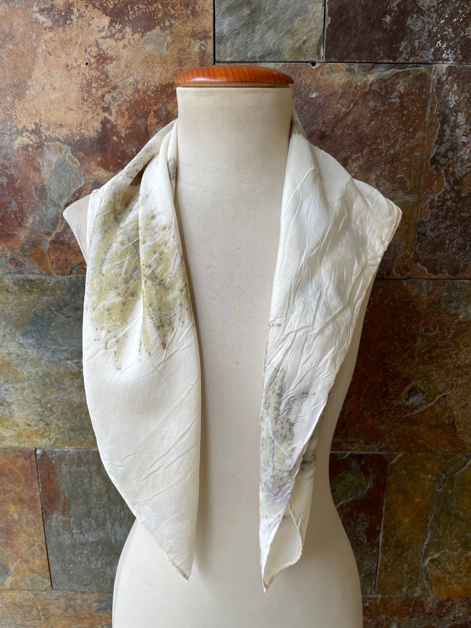 Pañuelo de cuello de seda 100% tintado con la técnica ECOPRINT por RAMÓN SANTOS