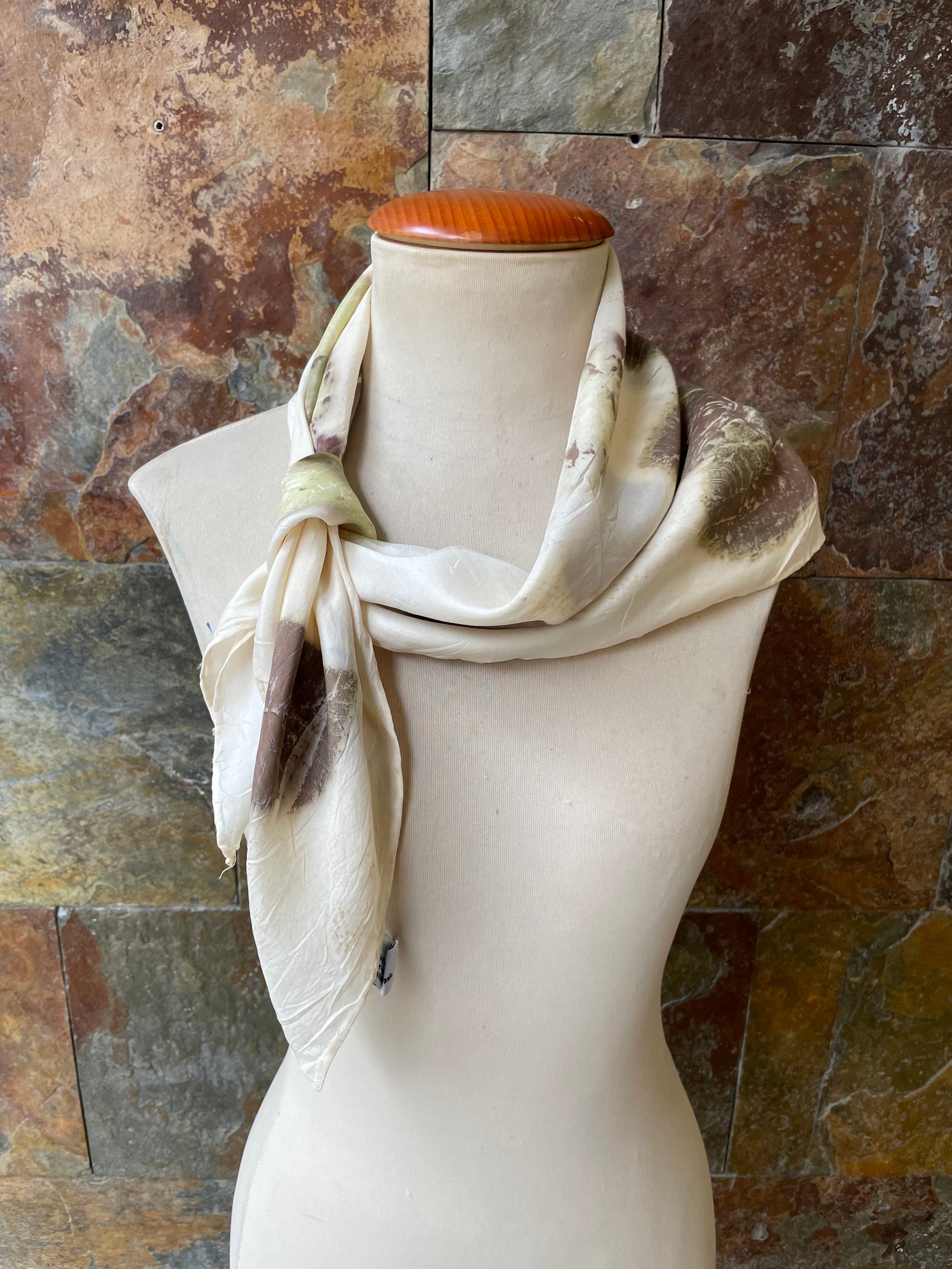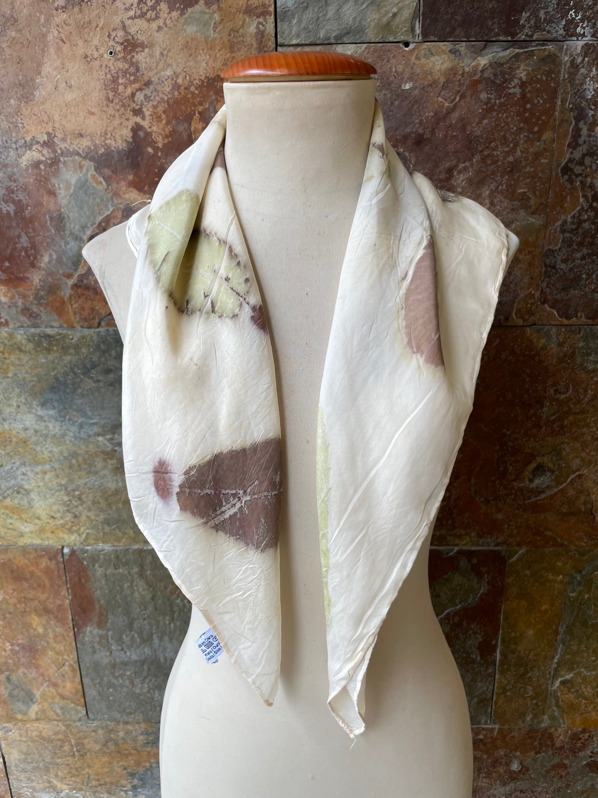 Pañuelo de cuello de seda 100% tintado con la técnica ECOPRINT por RAMÓN SANTOS