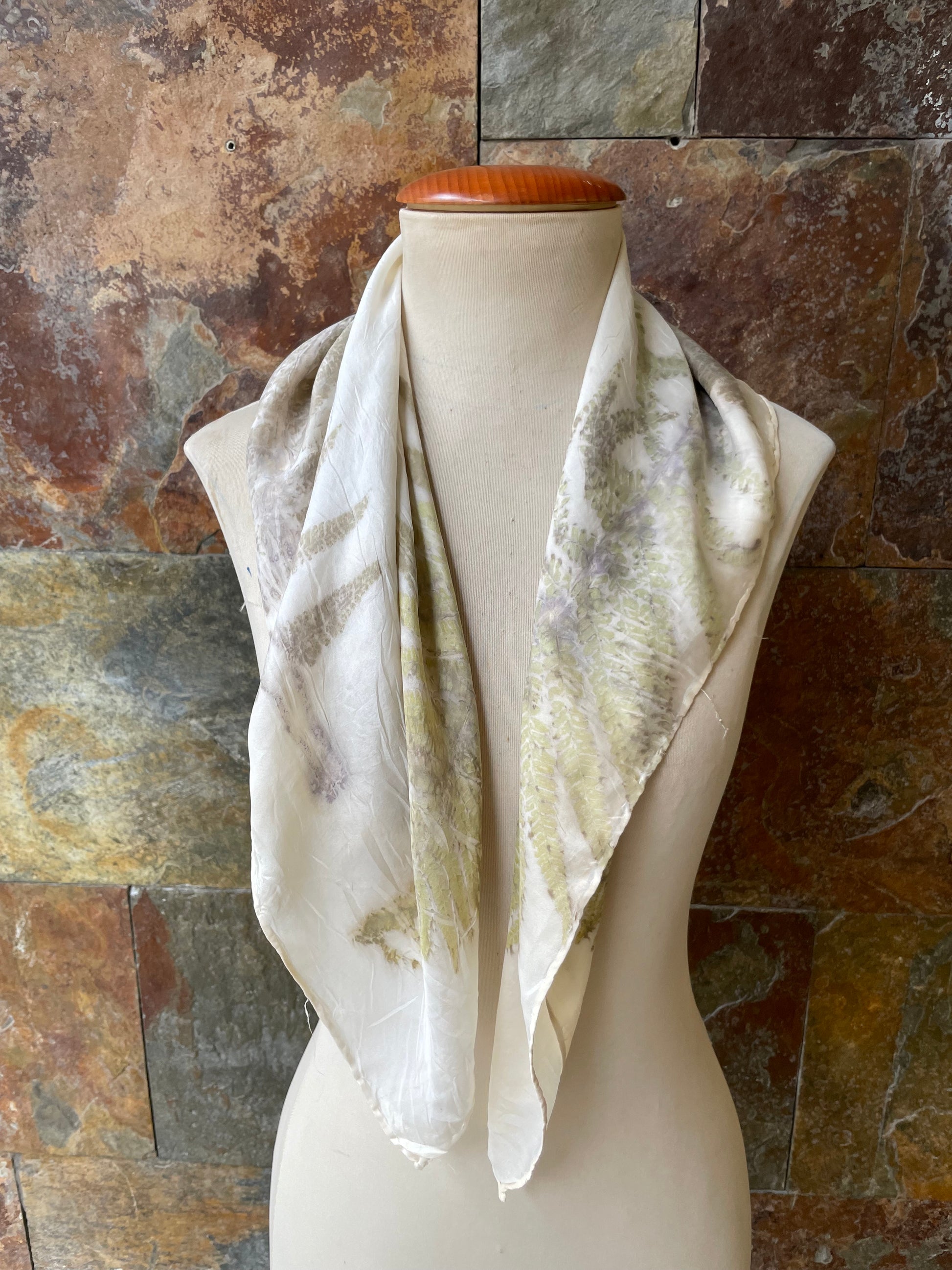 Pieza única. Pañuelo de cuello de seda 100%, creado con la exclusiva técnica de ECOPRINT por Ramón Santos. Cada pieza es única, realizada a mano con tintes naturales que capturan patrones y colores inspirados en la naturaleza. Ideal para añadir un toque de elegancia y originalidad a cualquier estilo, este pañuelo ecológico resalta la belleza de la seda en su forma más pura.