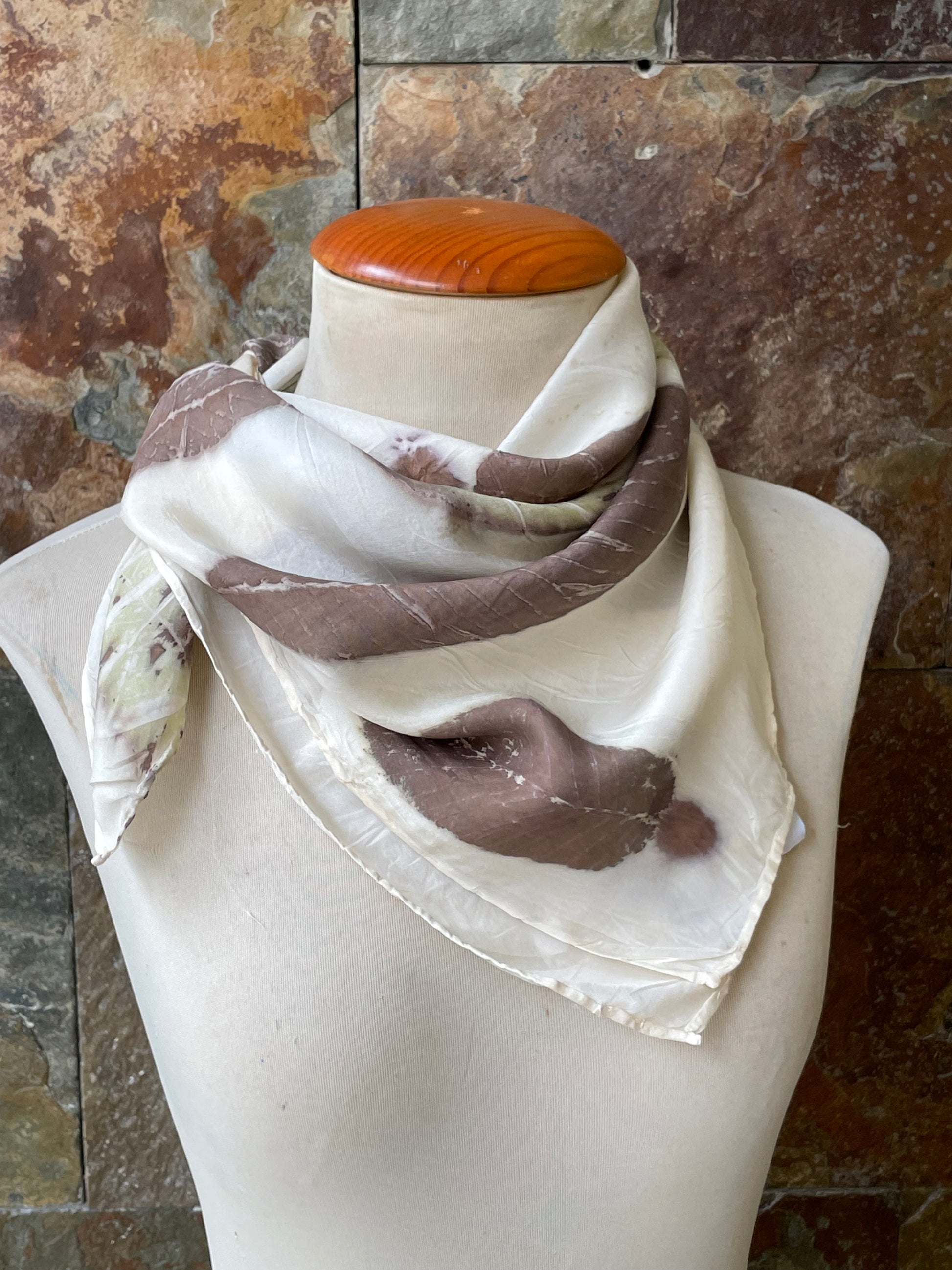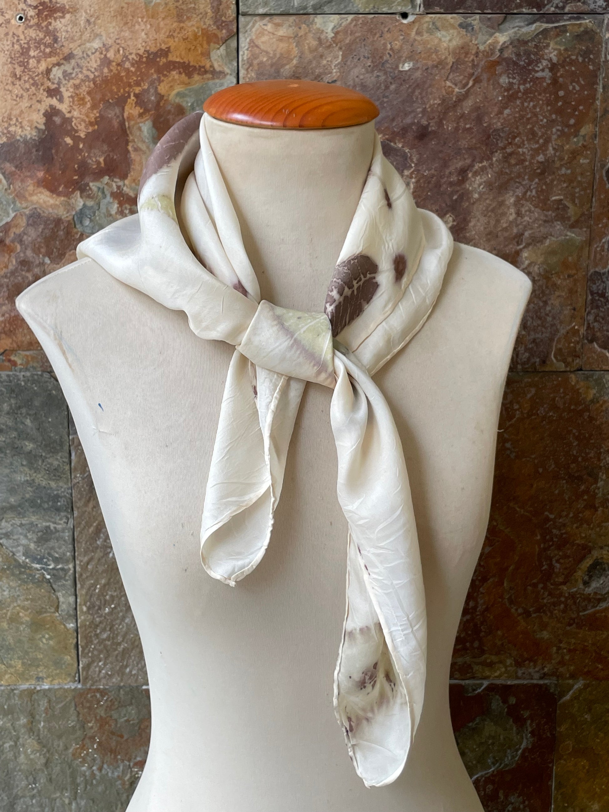Pañuelo de cuello de seda 100% tintado con la técnica ECOPRINT por RAMÓN SANTOS