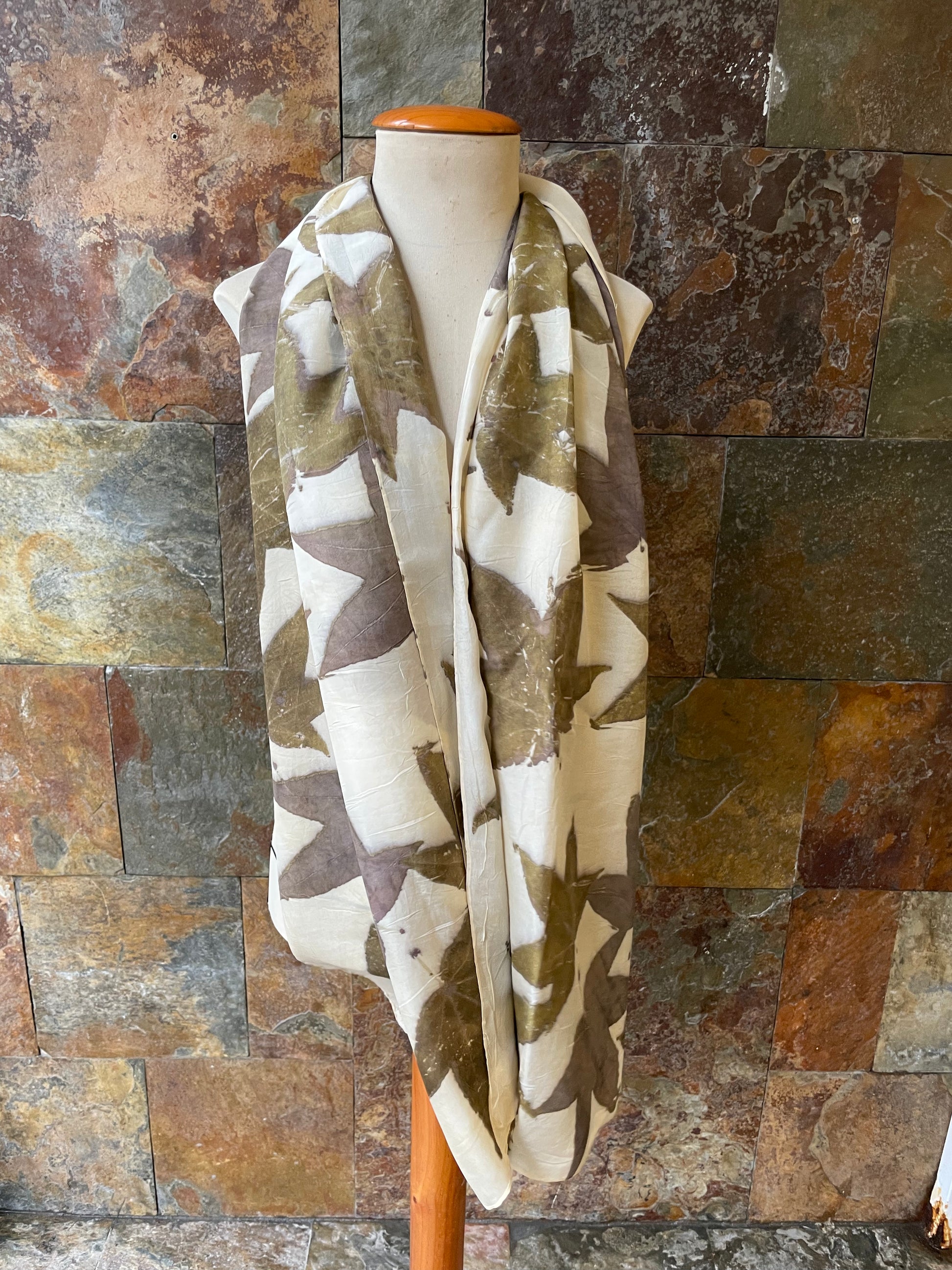 Pieza única. Pañuelo de seda 100%, creado con la exclusiva técnica de ECOPRINT por Ramón Santos. Cada pieza es única, realizada a mano con tintes naturales que capturan patrones y colores inspirados en la naturaleza. Ideal para añadir un toque de elegancia y originalidad a cualquier estilo, este pañuelo ecológico resalta la belleza de la seda en su forma más pura.