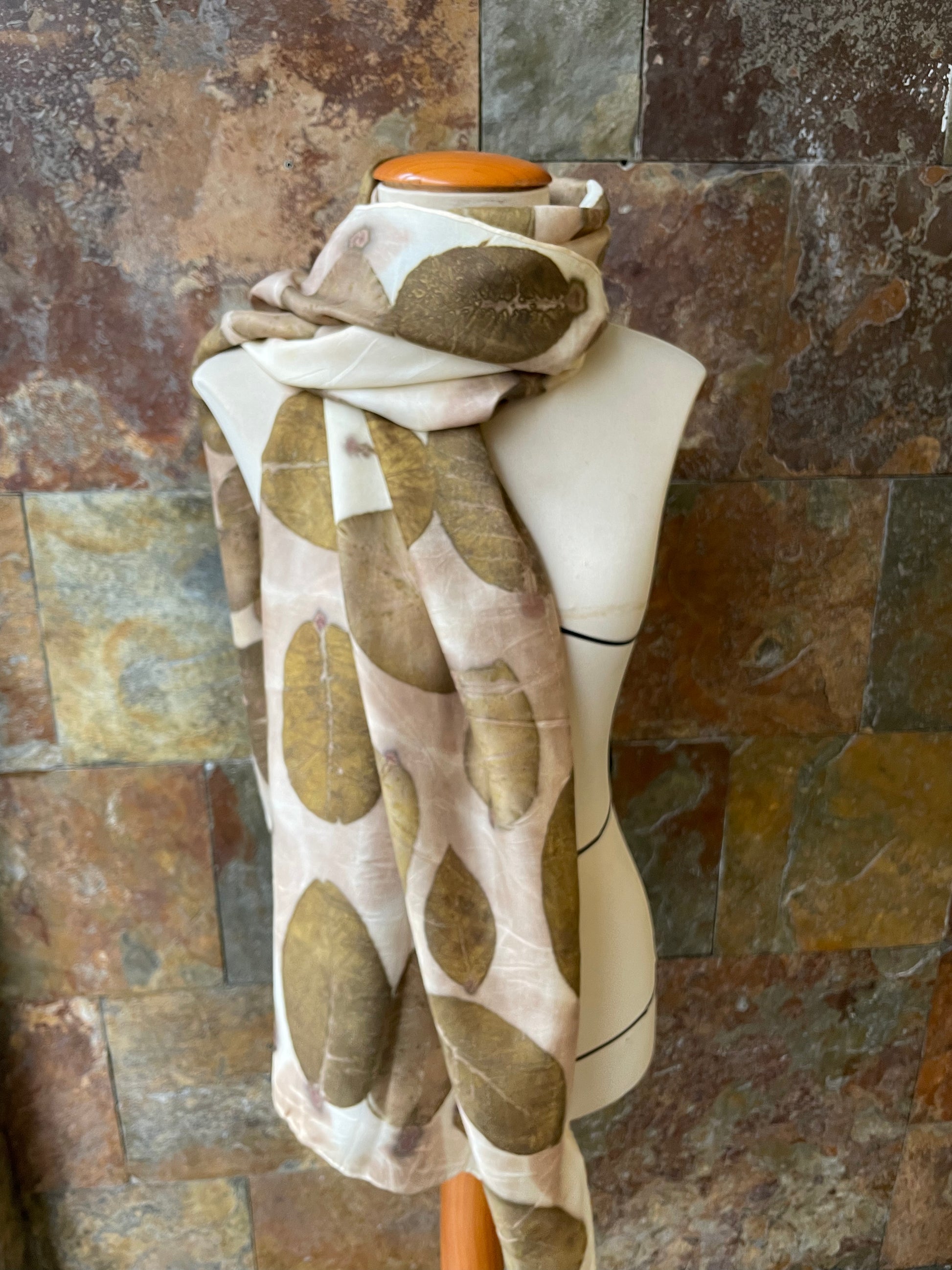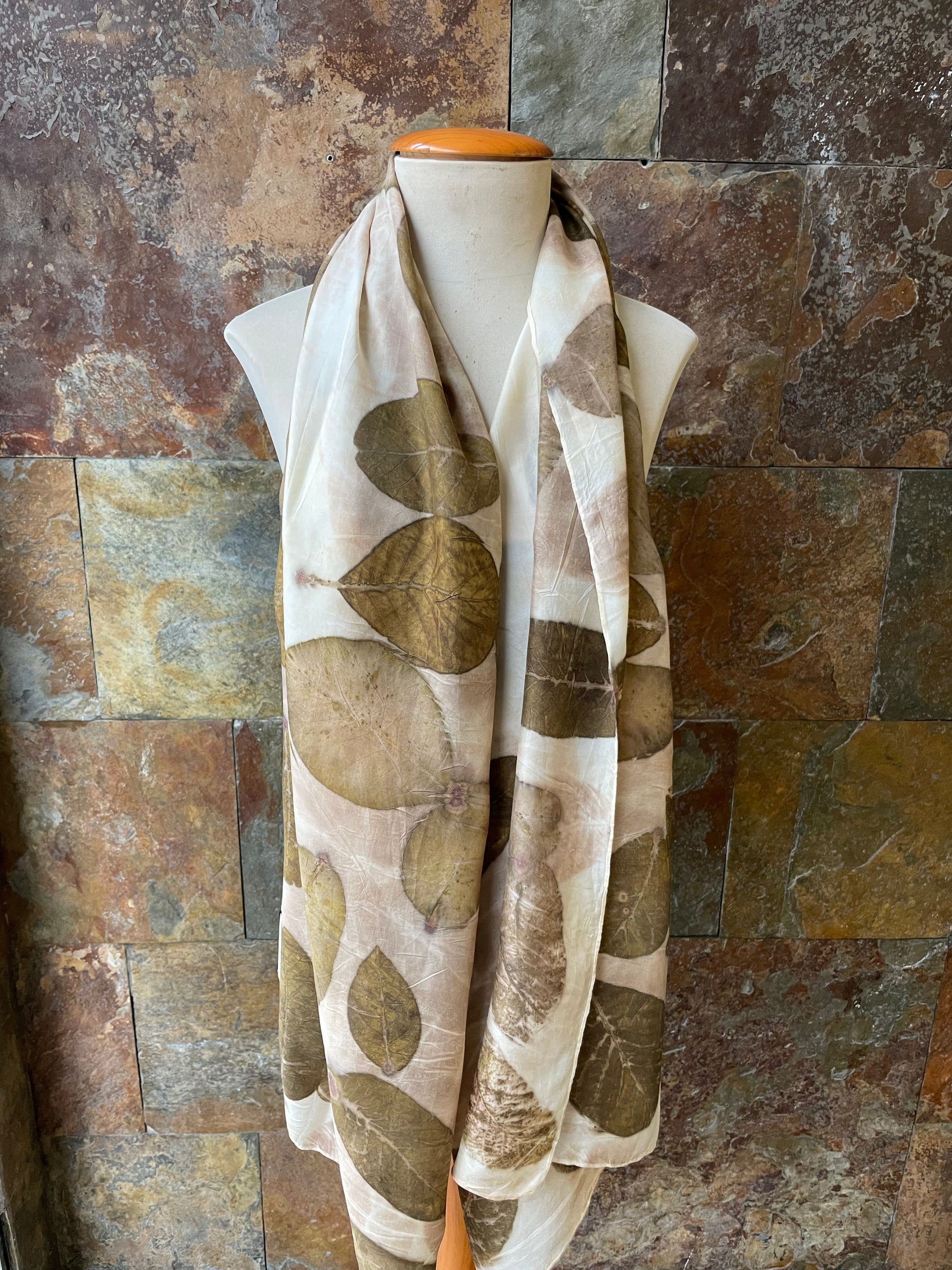 Pañuelo seda 100% tintado con la técnica ECOPRINT por RAMÓN SANTOS