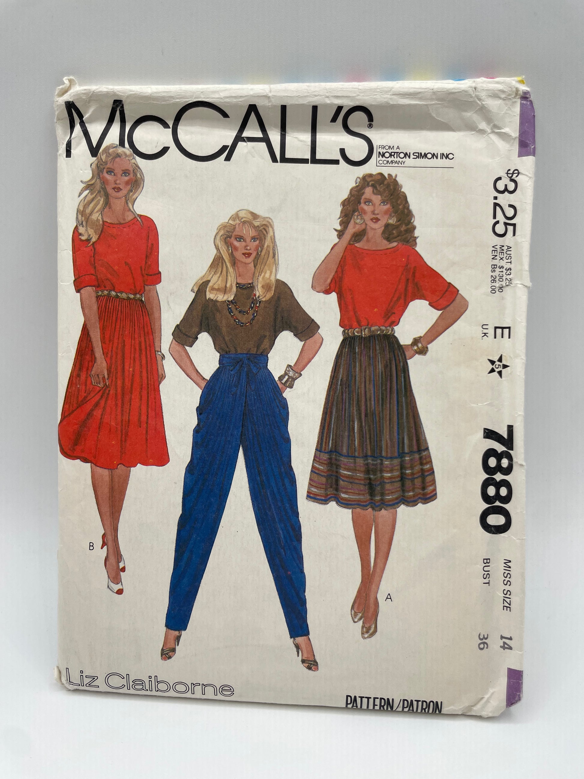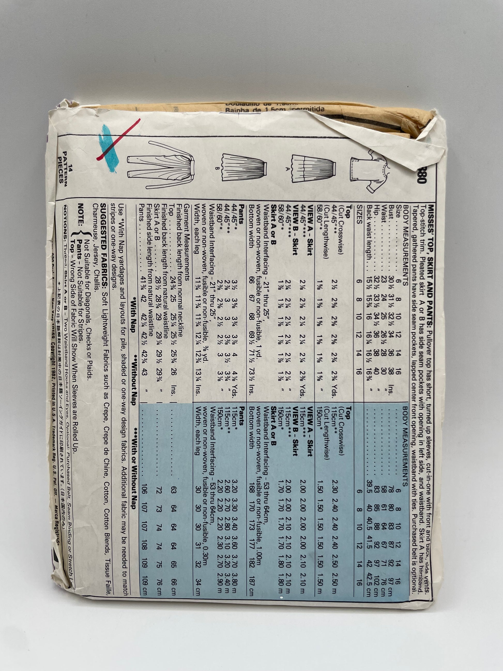 Patrón vintage original americano de pantalón, falda y blusa