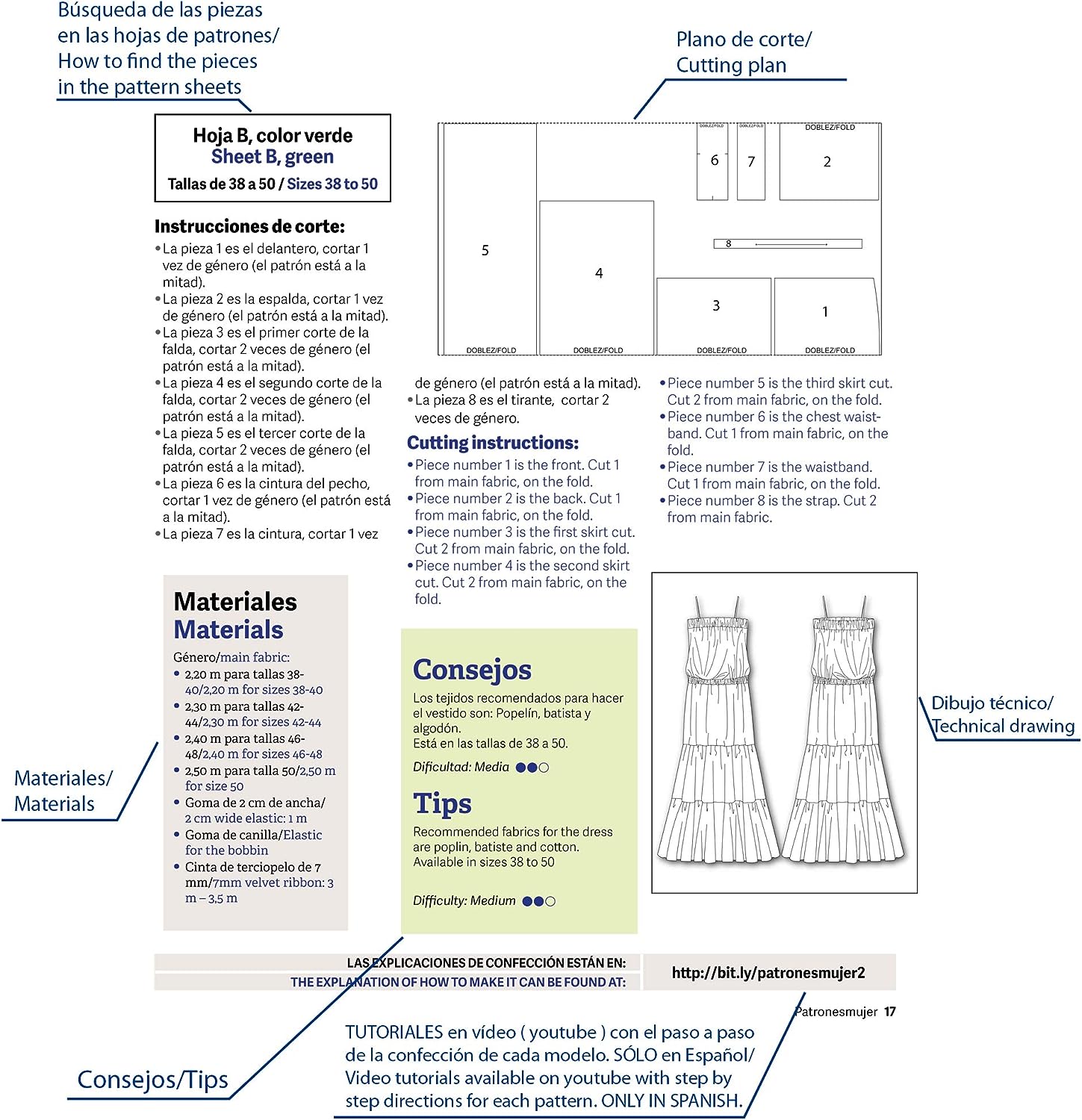 Tallas desde la 36 a la 52. La revista lleva una tabla de medidas, es importante adaptarte lo mas próximo a ella, te saldrán unos modelos espectaculares.