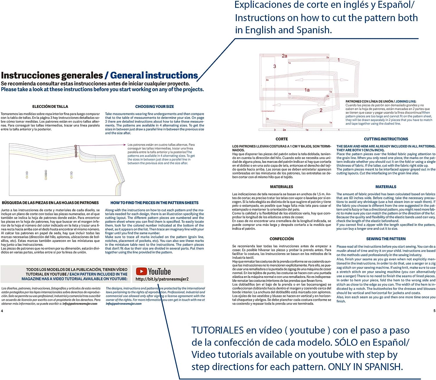 Margen de costura (1cm) ya incluido. Son patrones profesionales.