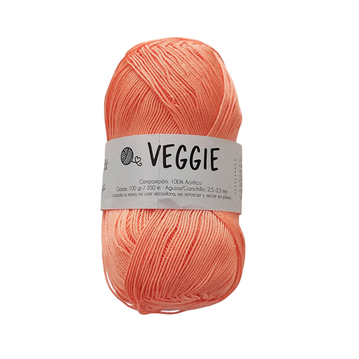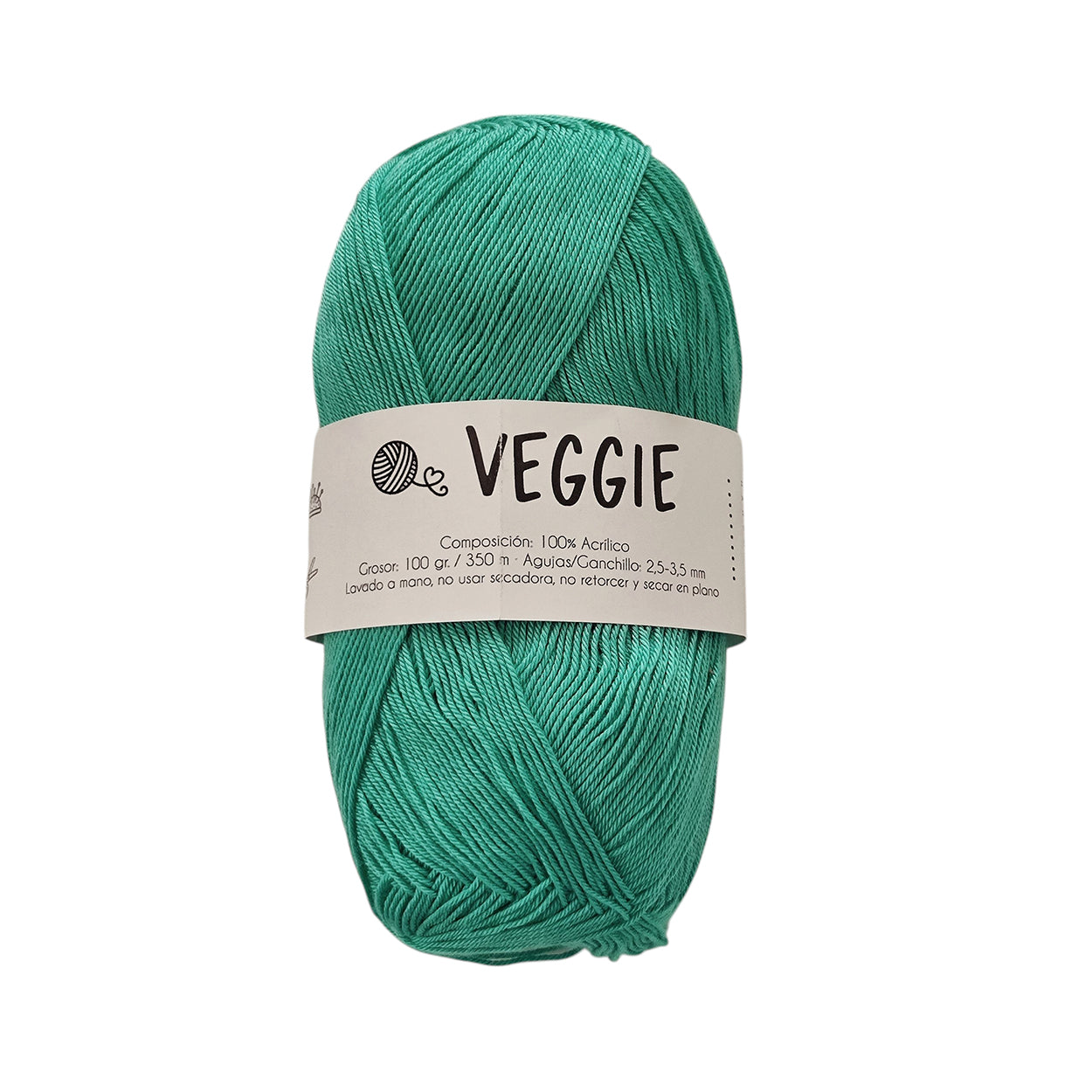 VEGGIE es un hilo SPORT para usar con aguja de ganchillo de 3 mm. Perfecto para tejer sin necesidad de mezclarlo con otros hilos.